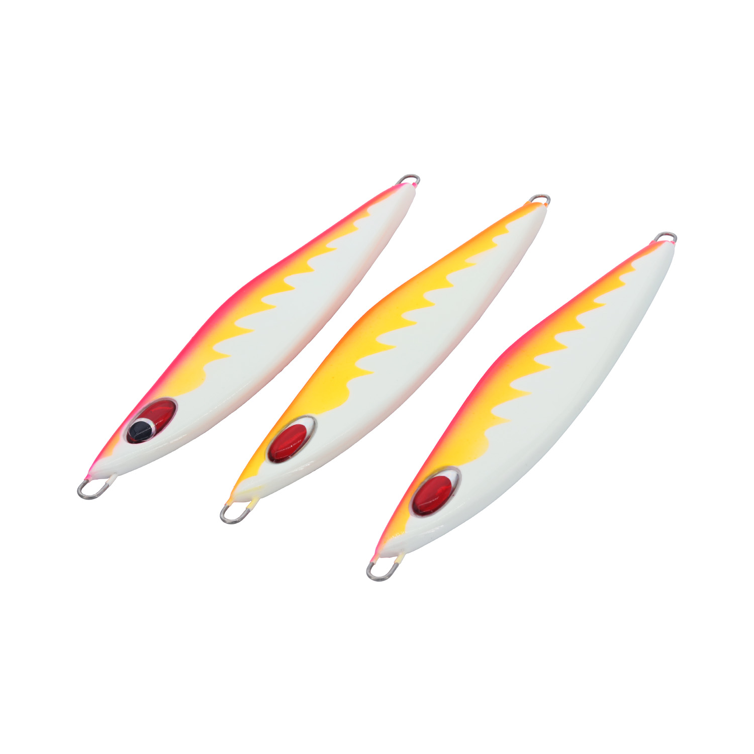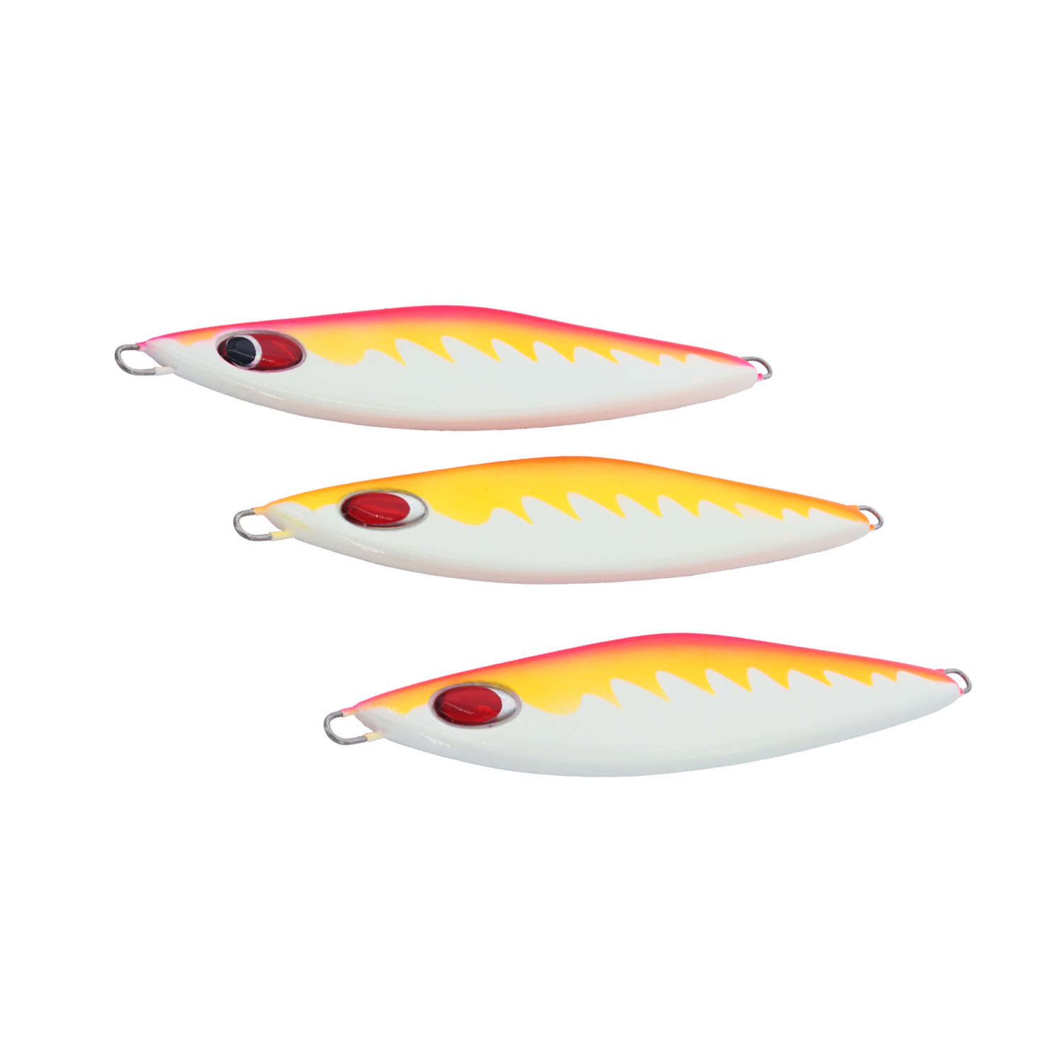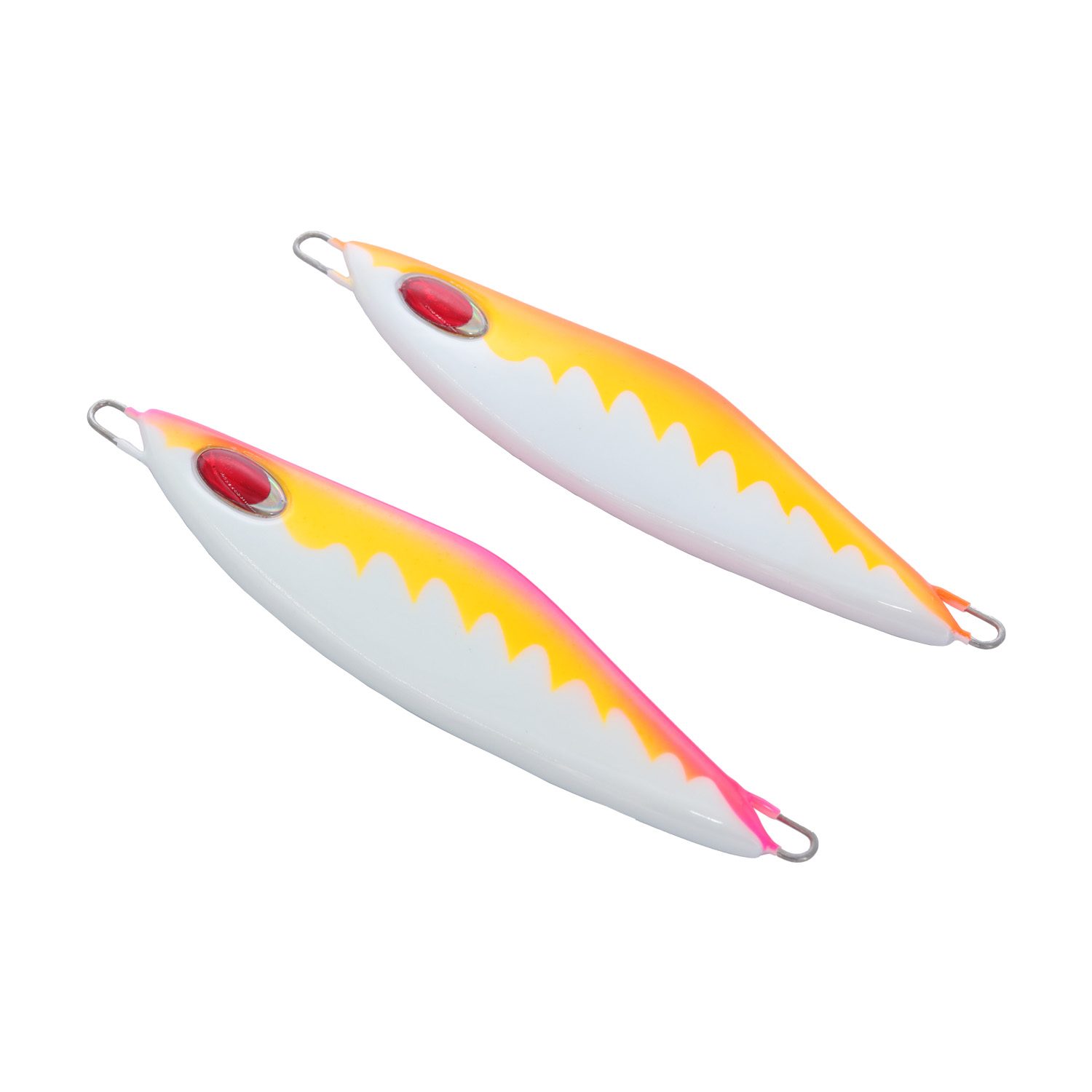 جيج معدني تم تصميمه ليتمايل يمينًا ويسارًا بشكل غير منتظم ليحاكي الطعوم الحية التي تهرب من الافتراس. تم تصميمه باتزان في الخلف ليجعل حركته عنيفة بأقل مجهود ينصح به للمبتدئين والمحترفين معا. تصميم متميز متساوي من الجانبين وعريض لتسهيل الحركة للاستخدام. مناسب لجميع أنواع الأسماك سواء في الأعماق الكبيرة او المتوسطة، سهولة ومرونة في الاستخدام ومصمم لاستخدام الحركات المتوسطة والسريعة . تم طرح التصميم ب 6 ألوان مختلفة زاهية ومجربة تناسب جميع أوقات اليوم سواء نهارًا أو ليلًا الى جانب انعاكاست الهولوجرافيك لتعطي طابع الكائن الحي ، كما تم طرحه بأوازان متعددة ليناسب جميع الأعماق.