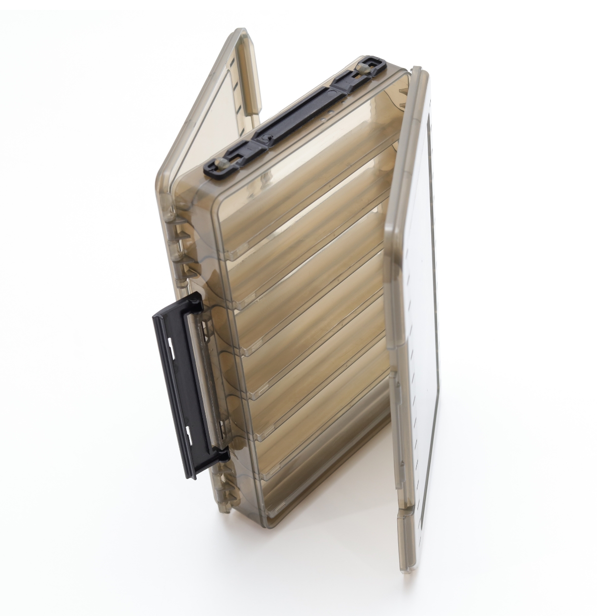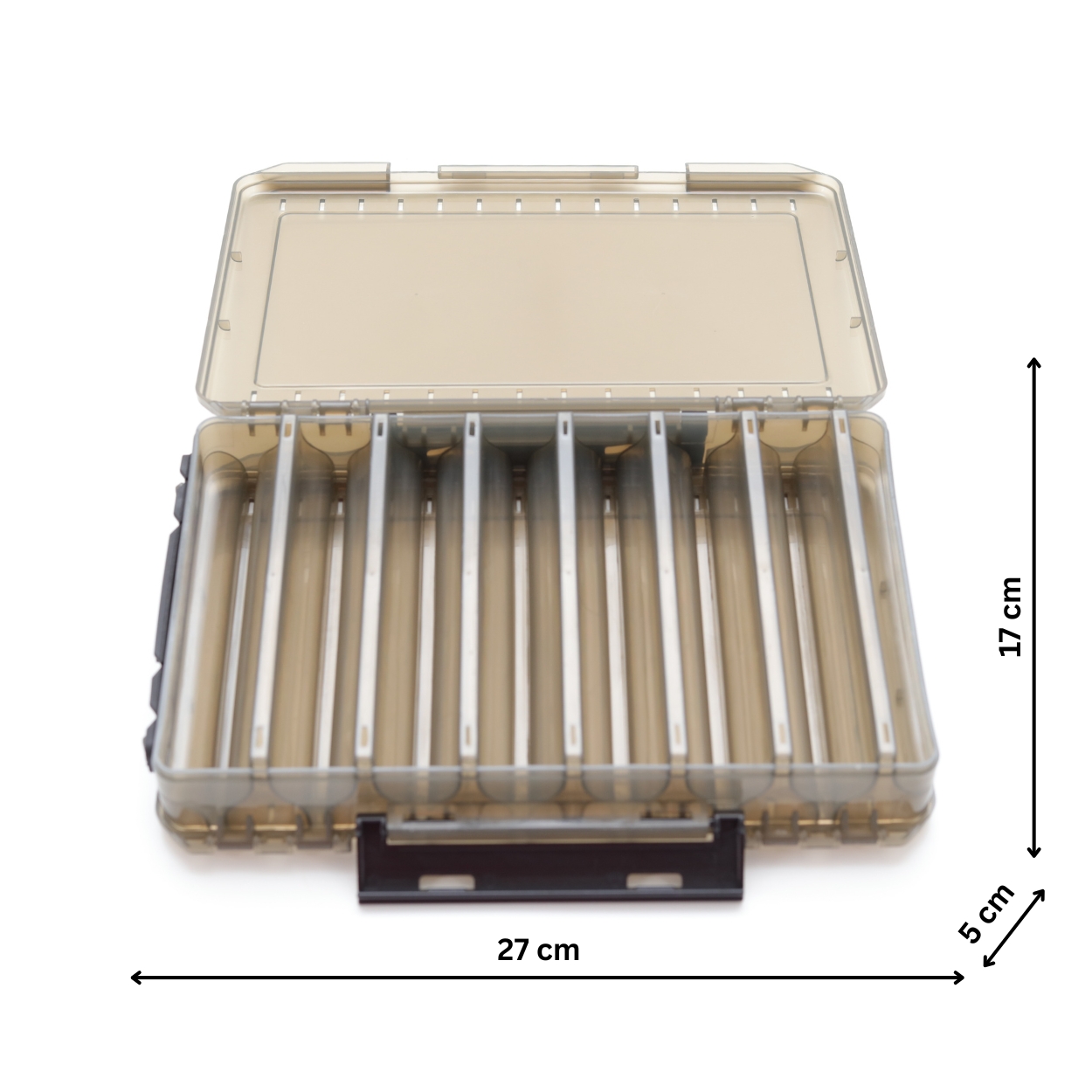 رؤية واضحة: غطاء شبه شفاف يسمح لك برؤية اللورات واختيار الطعم المناسب بسرعة قبل فتح الصندوق.