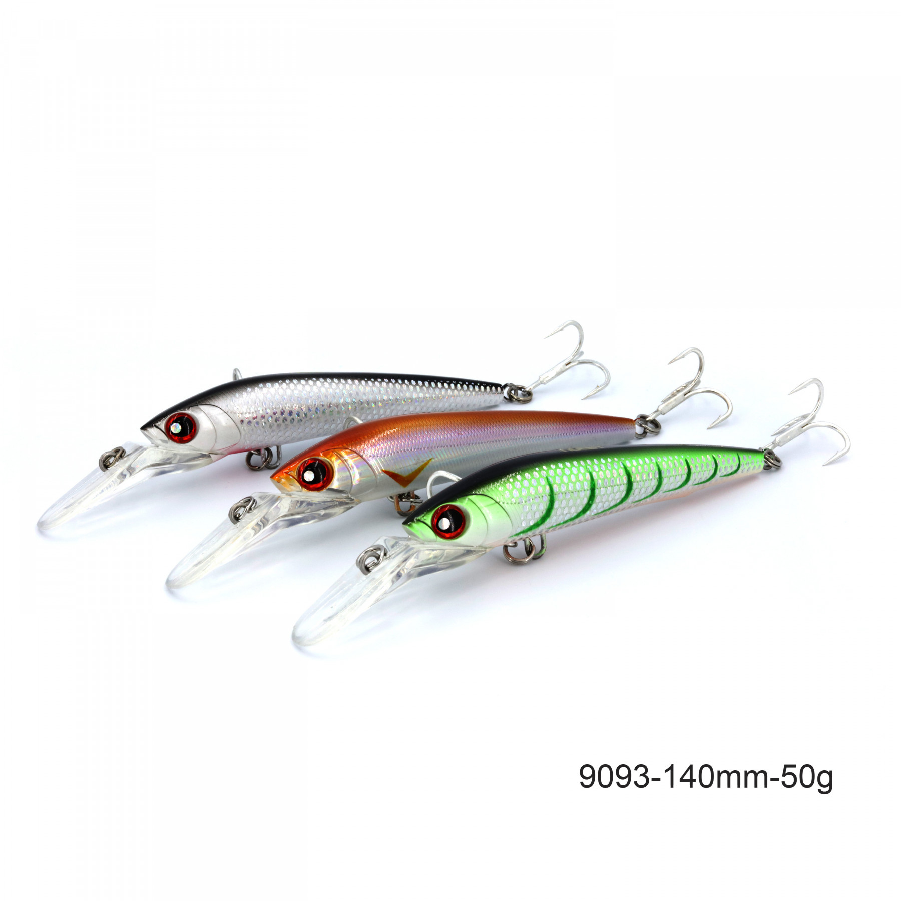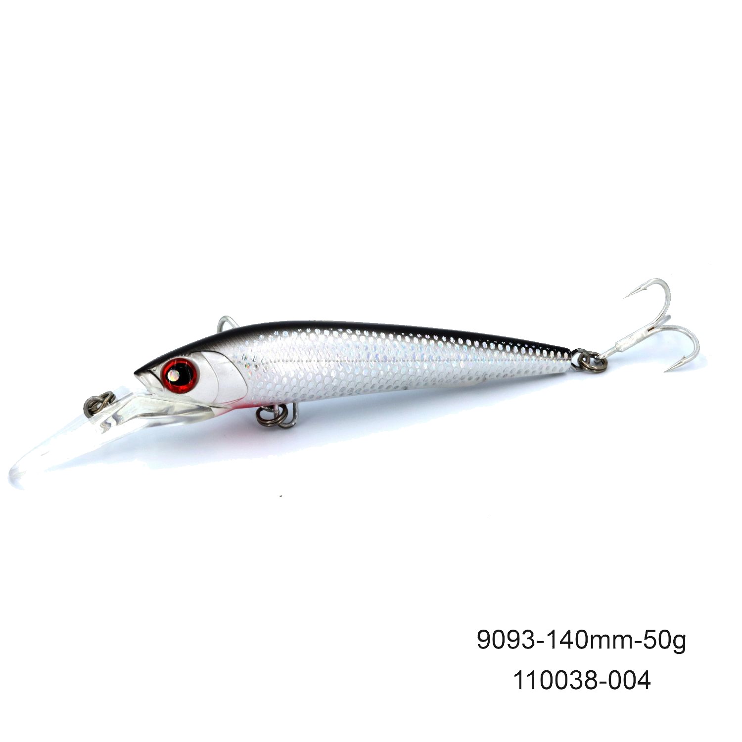 Sinking big minnow, owing big tongue, which can dive into 7m deep water. Classic lure radian equipped with water pressure plate, making the swimming action vivid and lifelike. Strengthen split ring and conjoined stainless steel wire design have strong tension. Equipped with imported Noeby treble hooks.